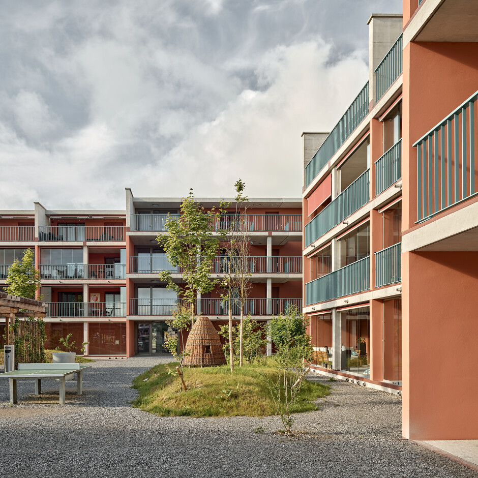 - Wohnsiedlung mit Blick ins Bergpanorama