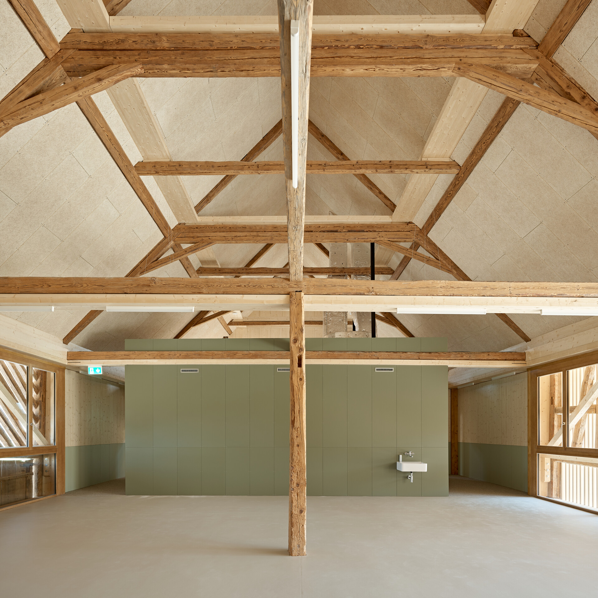 Ein Farbkonzept, das aus der denkmalpflegerischen Farbpalette des Kanton Aargaus abgeleitet wurde, prägt das neue Quartier: Bewusst kommunizierende vielfarbige Hof- und Gassenräume im Aussenbereich, unterstützt durch die Bepflanzung auf Plätzen, schaffen identitätsstiftende Orte. Zum Dorf hin schwächt sich diese Konzeption einheitlich zurückhaltend als Umlaufende „Rinde“ ab und die zwei geschützten Bauten „Scheune und Post“ behalten ihre ursprünglichen aargauischen Farben und leiten aus dem durchfahrenen Dorf-Strassenzug ins neue Quartier ein.