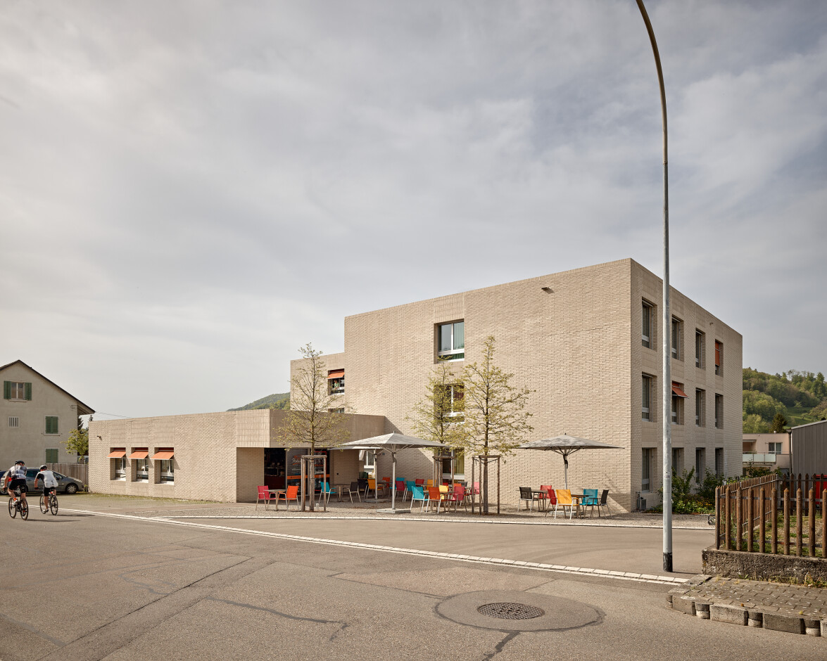 Die zwei Hauptnutzungen, das Pflegewohnhaus und das Bistro mit Mehrzweckraum für das Dorf Pfungen, sind Ausgangspunkt des Projekts. Das Pflegewohnhaus spielt mit der Aussicht, die für die Wohnräume eingefangen wird. Das Bistro orientiert sich an der Bahnhofstrasse, um Öffentlichkeit zu schaffen und die Gäste einladend zu empfangen.