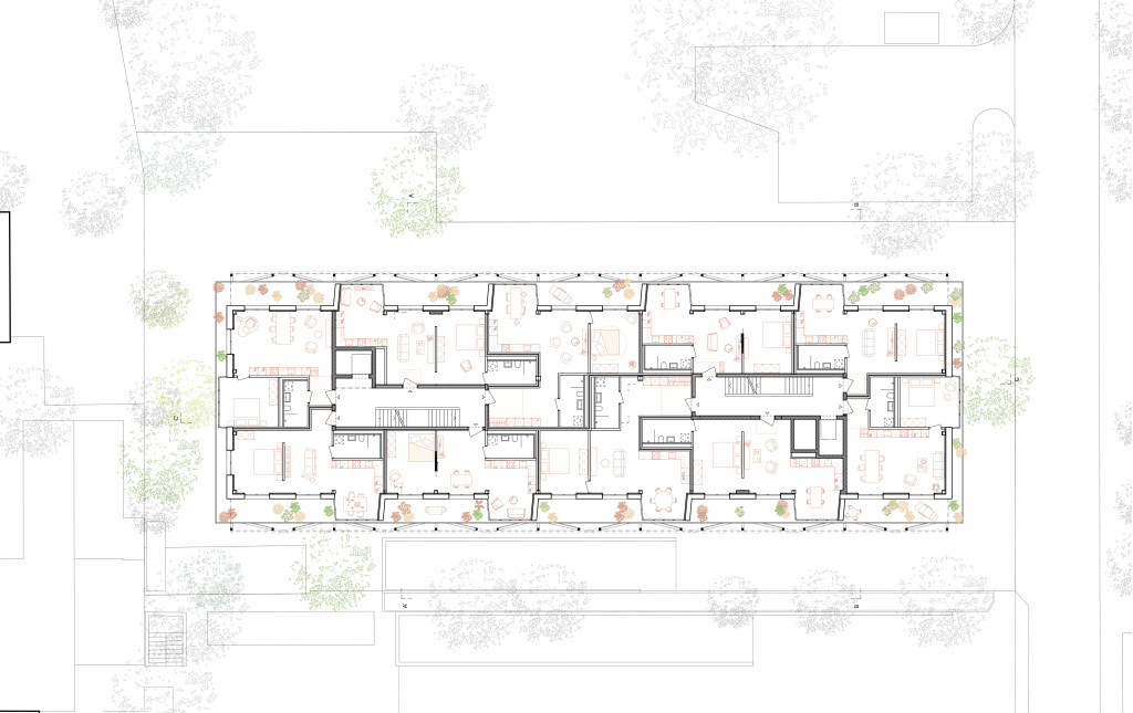 Regelgeschoss mit Wohnungsmix und Möblierungsmöglichkeit