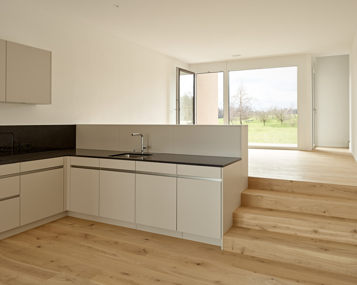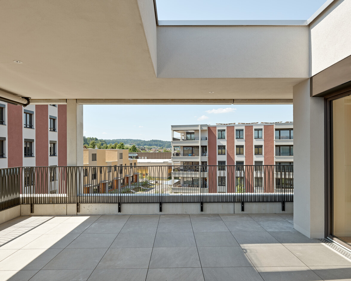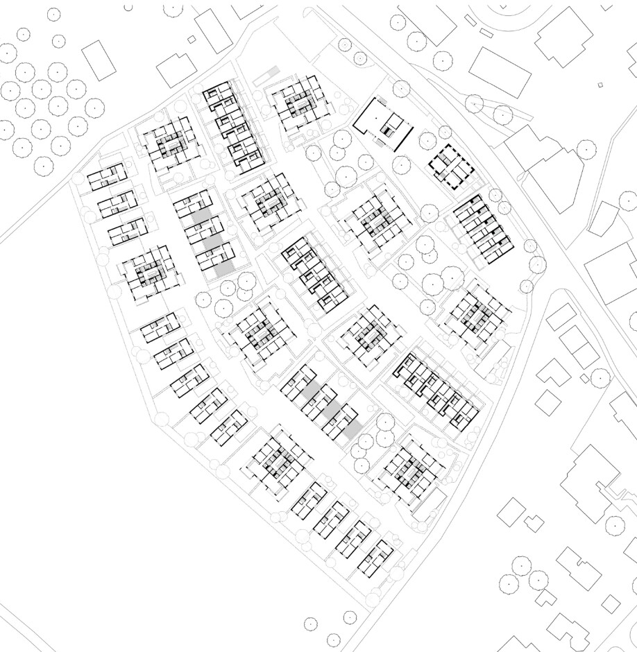 Prozessauszug: Drei Bauetappen mit 180 Wohnungen über 10 Jahre in verschiedentlichen Typologien, verbunden über 2 langgezogene Tiefgaragen sind zeichnerisch und computertechnisch höchst komplex miteinander verknüpft. Wohnungs-Verlinkungen, Kotensetzungen und BIM Planung auf höchstem Niveau unterstützen die gesamte Planung effizient. Trotz dieser zeichnungstechnischen Vereinfachungen entstehen diverse Gebäudetypen, 9 an der Zahl, welche die Dorferweiterung mit öffentlichen Strassenzügen vielseitig städtebaulich prägen und ihr eine besondere Stimmung verleihen.