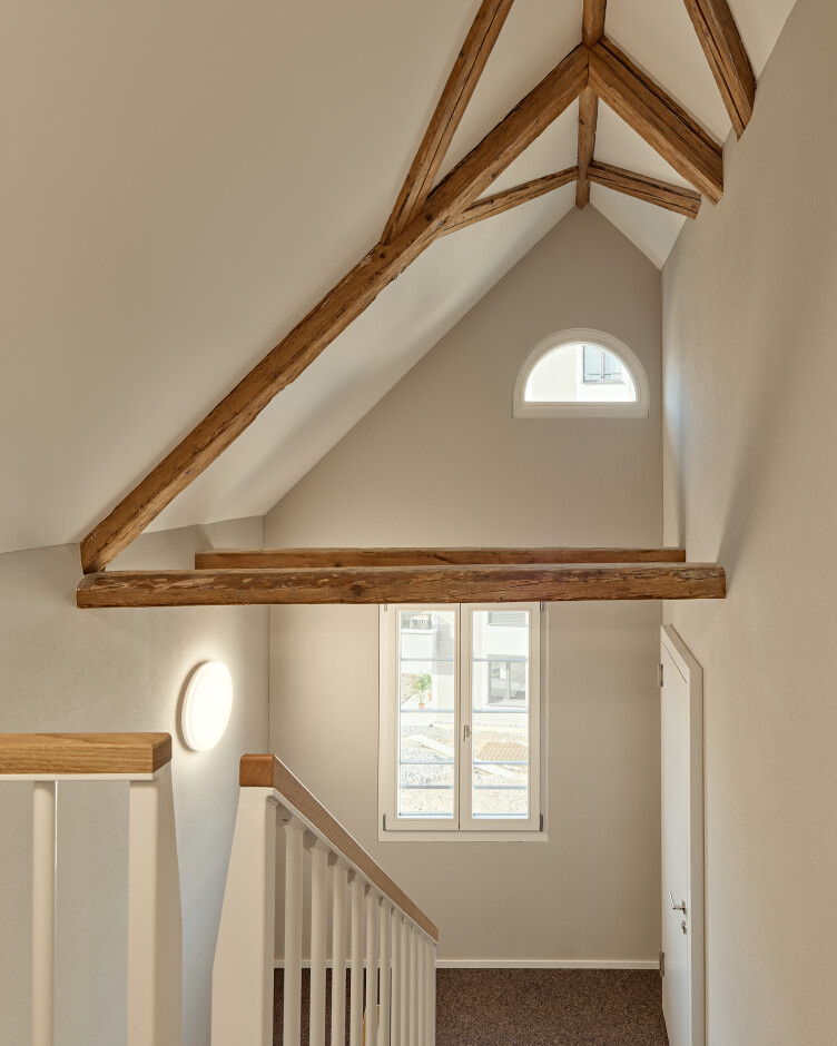 Ein Farbkonzept, das aus der denkmalpflegerischen Farbpalette des Kanton Aargaus abgeleitet wurde, prägt das neue Quartier: Bewusst kommunizierende vielfarbige Hof- und Gassenräume im Aussenbereich, unterstützt durch die Bepflanzung auf Plätzen, schaffen identitätsstiftende Orte. Zum Dorf hin schwächt sich diese Konzeption einheitlich zurückhaltend als Umlaufende „Rinde“ ab und die zwei geschützten Bauten „Scheune und Post“ behalten ihre ursprünglichen aargauischen Farben und leiten aus dem durchfahrenen Dorf-Strassenzug ins neue Quartier ein.