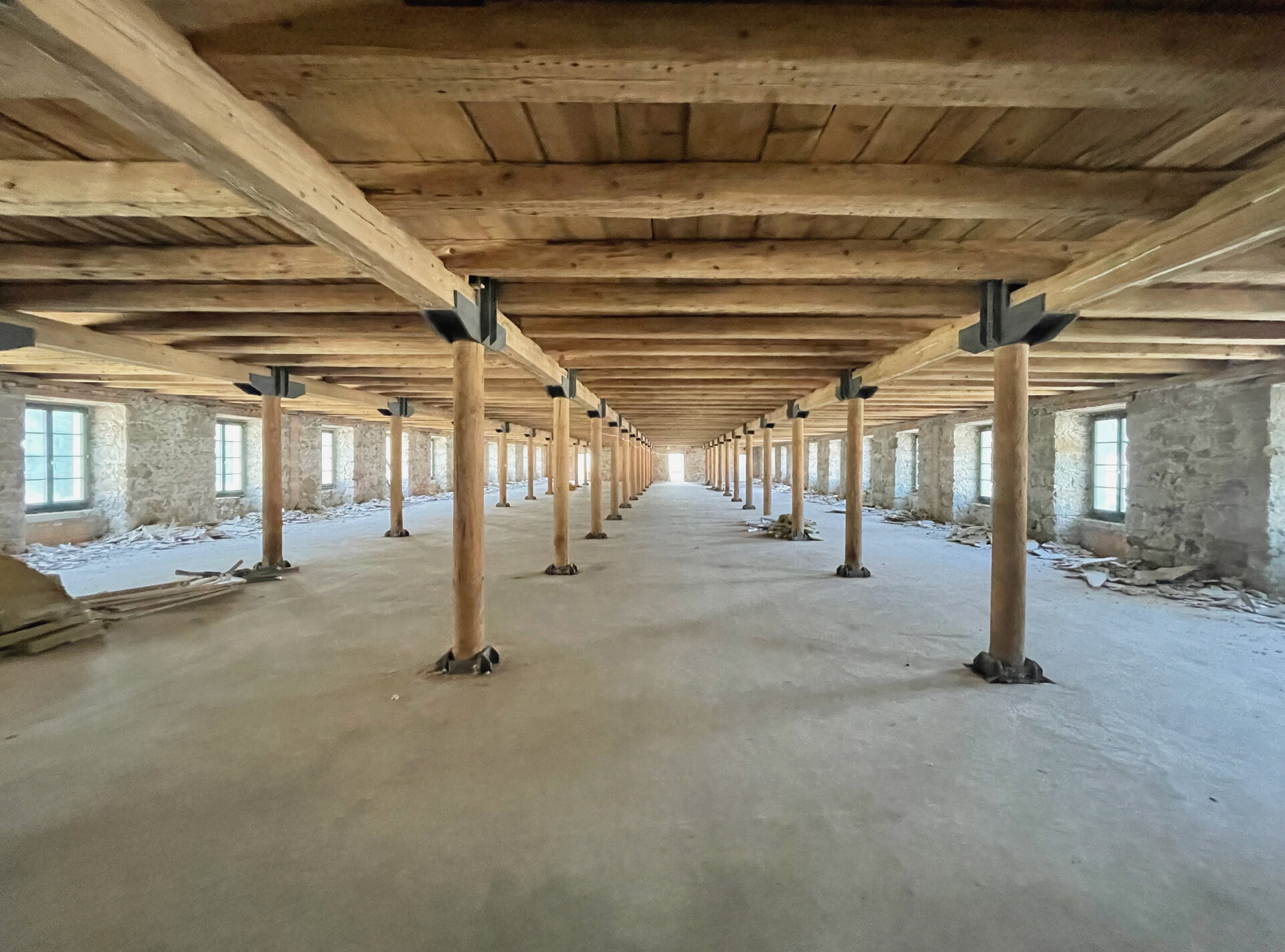 Prozessauszug: Dem Erscheinungsbild der alten Spinnerei von aussen und der Hallenkonstruktion von innen galt es den Vortritt zu geben und die Entwurfsarbeit hatte sich dieser Prämisse unterzuordnen. Die eine langgezogene Lukarne konnte mit der Denkmalpflege mehreren kleineren vorgezogen werden, um ein ruhiges Dachbild selbstverständlich zu vermitteln und erst auf den zweiten Blick die neue Gestaltung erkennbar machen. Im Inneren sind Grundrisstypologien massgeschneidert umgesetzt, welche die Statik (Decke und Stützen) mit ihrem Raster in Szene setzen.